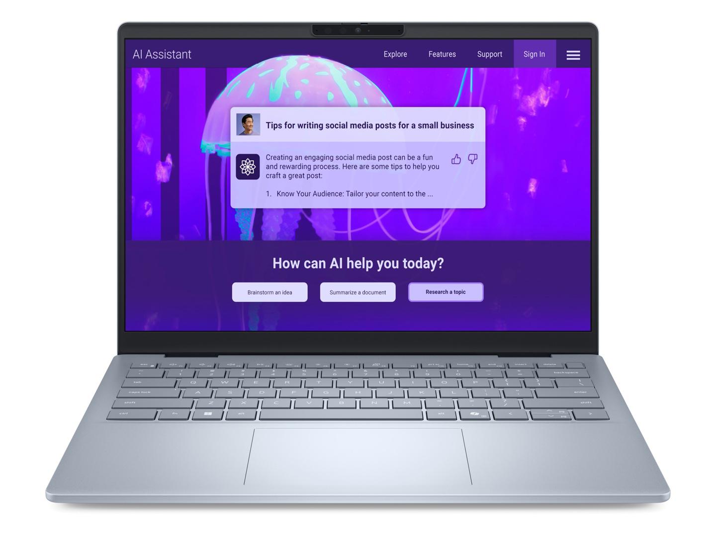 这款 Dell 14 Plus 采用冰川银配色机身,配备 64Wh 电池,薄至 14mm,起始重量 1.55kg,配备一块 14.0 英寸的 2560×1600 分辨率 120Hz 刷新率 300nits 亮度 WVA IPS 显示面板。